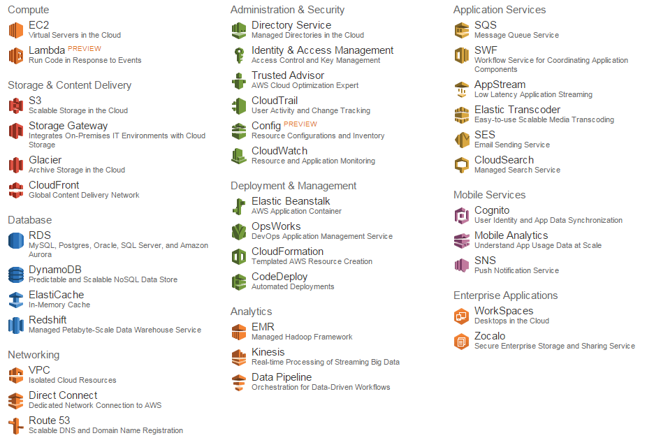Amazon has a very wide range of cloud-based services. At the time of writing this post Amazon offered the following services: