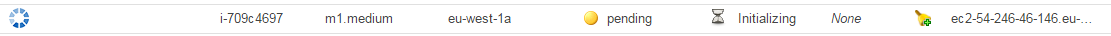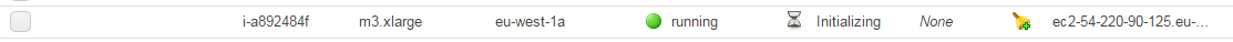You can also look at the instances being initialised directly in EC2. If you check out the instances list you’ll see the master node – already initialised when I took the screenshot: