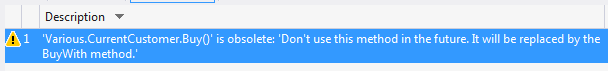 [Obsolete("Don't use this method in the future. It will be replaced by the BuyWith method.")]