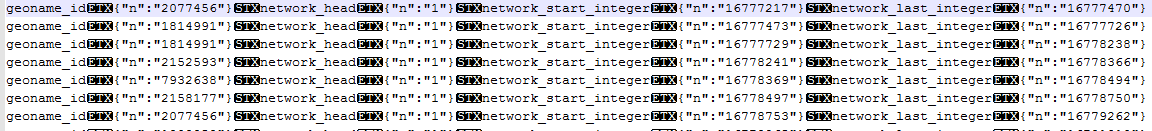 - Extract the first and second columns, i.e. the CIDR address and the geoname ID