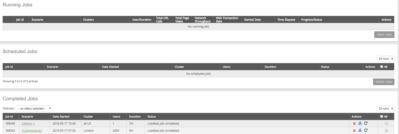 In our case we provide a link that leads the customer to the jobs summary page to view all load test jobs. The URL is https://loadtest.apicasystem.com/jobs and the page looks like this: