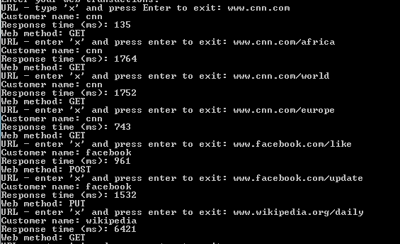 We’ll group the web transactions according to customer and date where the date is represented at the level of minutes. The key of the grouping – a dictionary – will be the file name format customer-year-month-day-hour-minute. The value of the dictionary will be the web transactions the customer made in that minute. The below method will create that dictionary:
