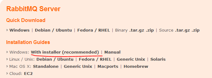 This will download an installation package. Go through the installation process accepting the defaults. Then go back to the Windows installation page on the RabbitMQ page and click the following link: